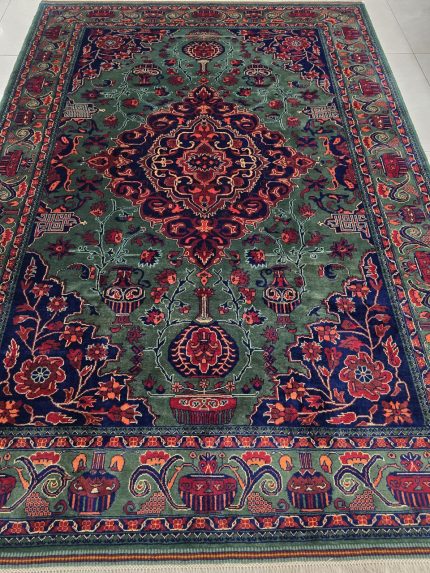 فرش سبزلاکی طرح قشقایی-شش متری-z377129